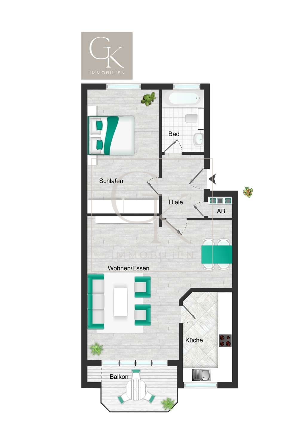 Die Wohnung überzeugt durch eine praktische Raumaufteilung: Ein großzügiges Wohnzimmer mit Zugang zum Balkon, ein Schlafzimmer, ein Abstellraum innerhalb der Wohnung sowie ein eigenes Kellerabteil bieten ausreichend Platz. Ein privater Außenstellplatz direkt am Haus und in unmittelbarer Nähe zur Fußgängerzone rundet das Angebot ab.